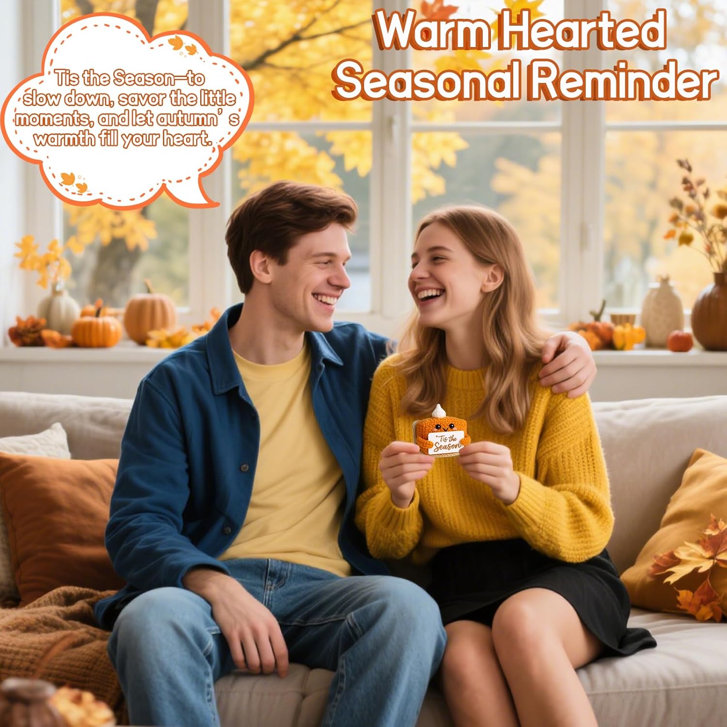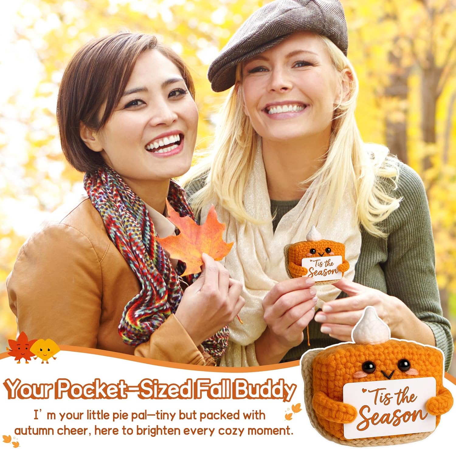 Tis The Season Fall Decor | Mini Crochet Pumpkin Pie Plush | Small Handmade Autumn Halloween Thanksgiving Items for Home Office Indoor Table Decoration Christmas Stocking Stuffer Ornament
