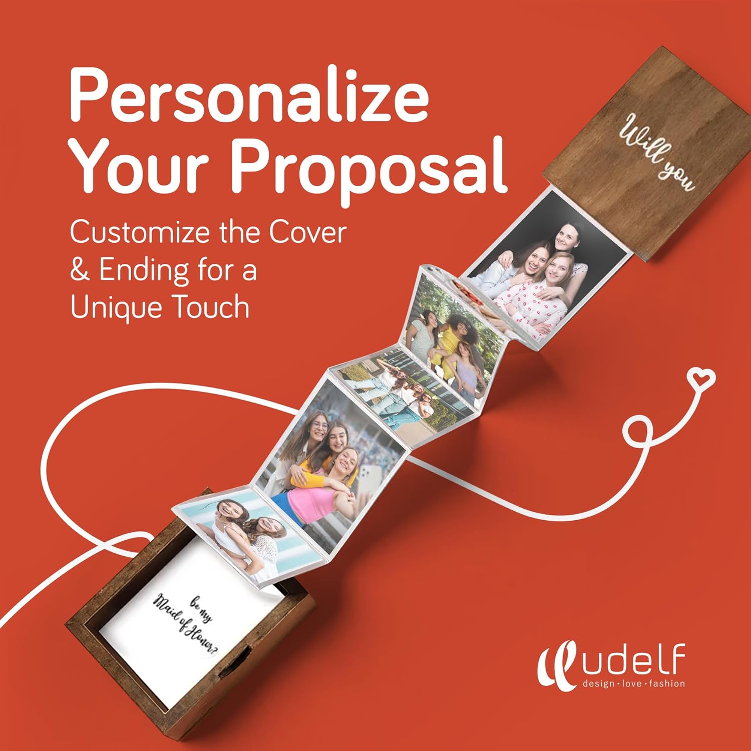 udelf Personalized Wooden Photo Box Gift with Accordion Picture Pull Out | Custom Photo Album Box | Picture Box Gift for Bridesmaid and Maid of Honor Proposal I Holds 14 Photo Prints, 3"x2"