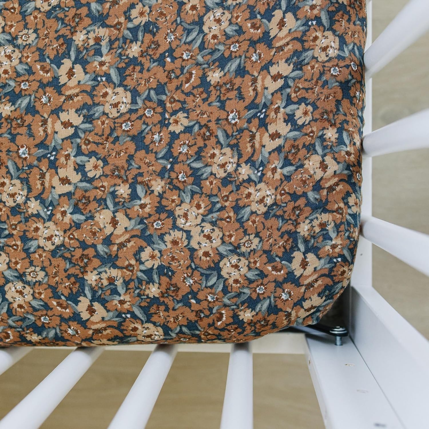 Venetian Floral Muslin Crib Sheet by Mebie Baby, Soft and Breathable Bed Sheets for Babies, Modern Neutral Bedding for Cribs, Standard Crib Mattress Fitted Sheet, Great for Boy or Girl Room or Nursery