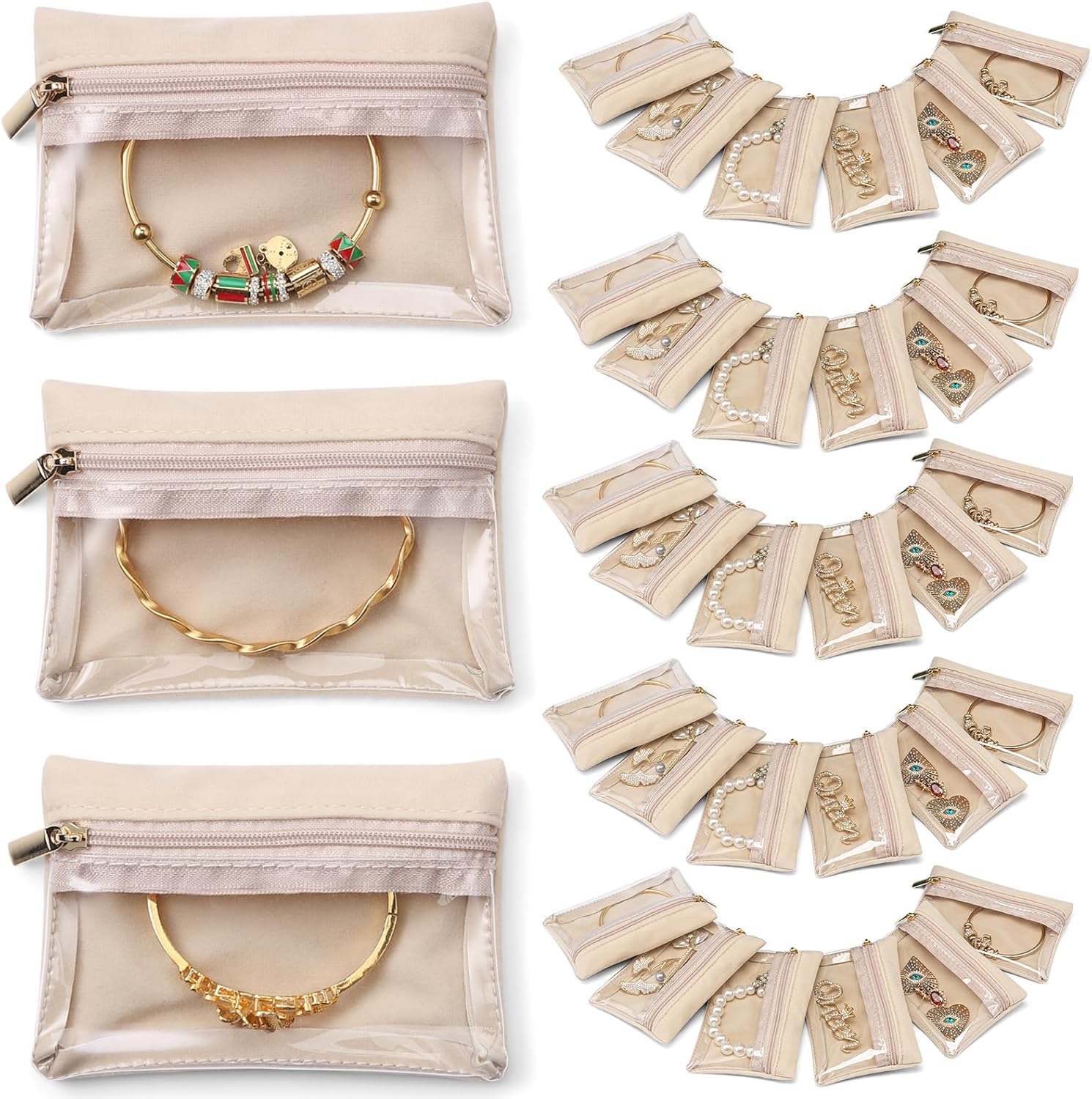 [Soft Velvet] Soft velvet give your jewelry the most powerful protect, don't have to worry about your jewelry getting scratched. 33 velvet transparent storage bags have soft touch, could protects your jewelry from scratches