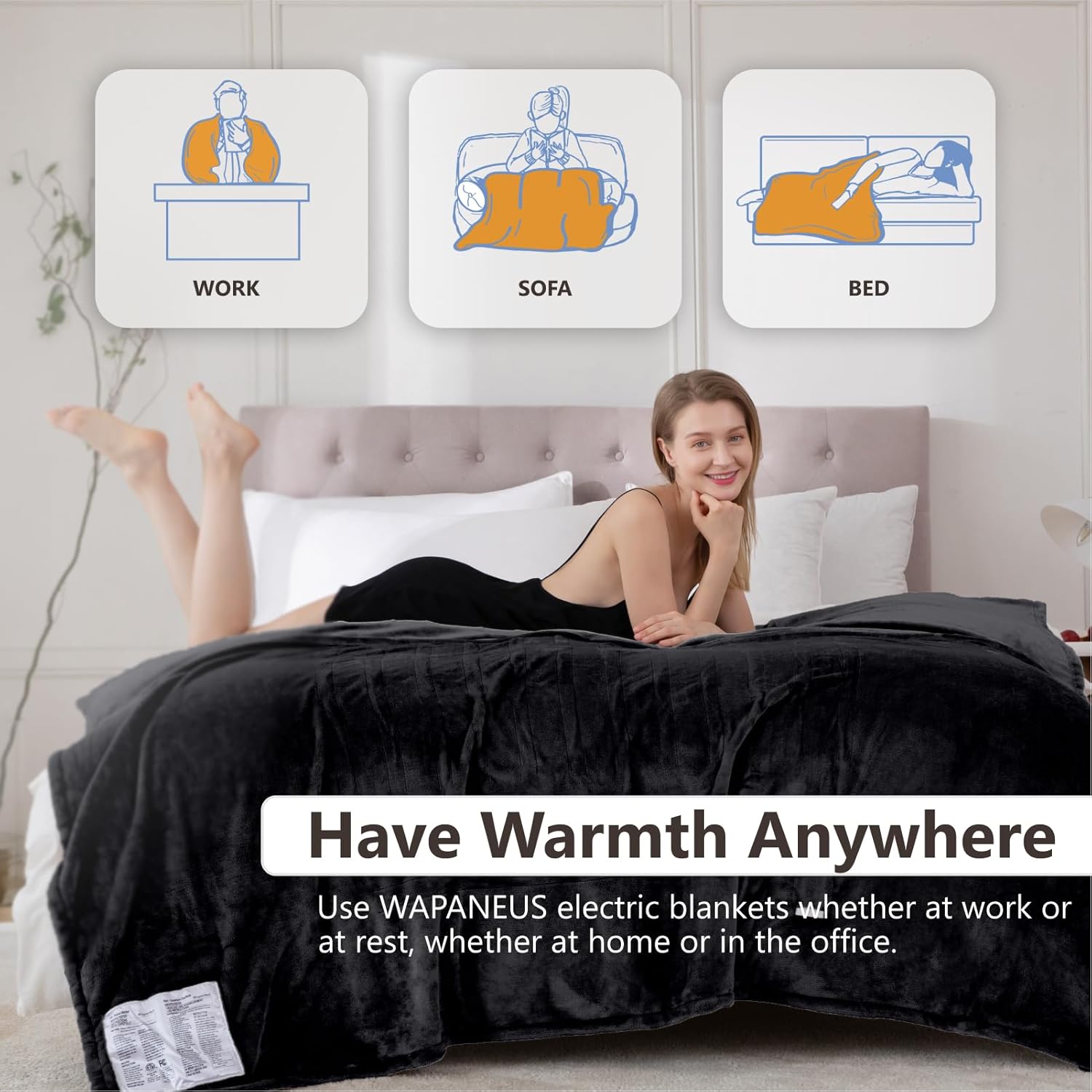 【Fast Heating & Luxuriously Soft】 The WAPANEUS superior heated blanket adopts a double-sided design with both sides made of 220GSM skin-friendly and high-quality flannel, providing a warm and comfortable experience. The blanket is equipped with 10 heat settings and 12 hours timer settings. The fast heating function helps you stay cozy and combat cold weather in a very short time.