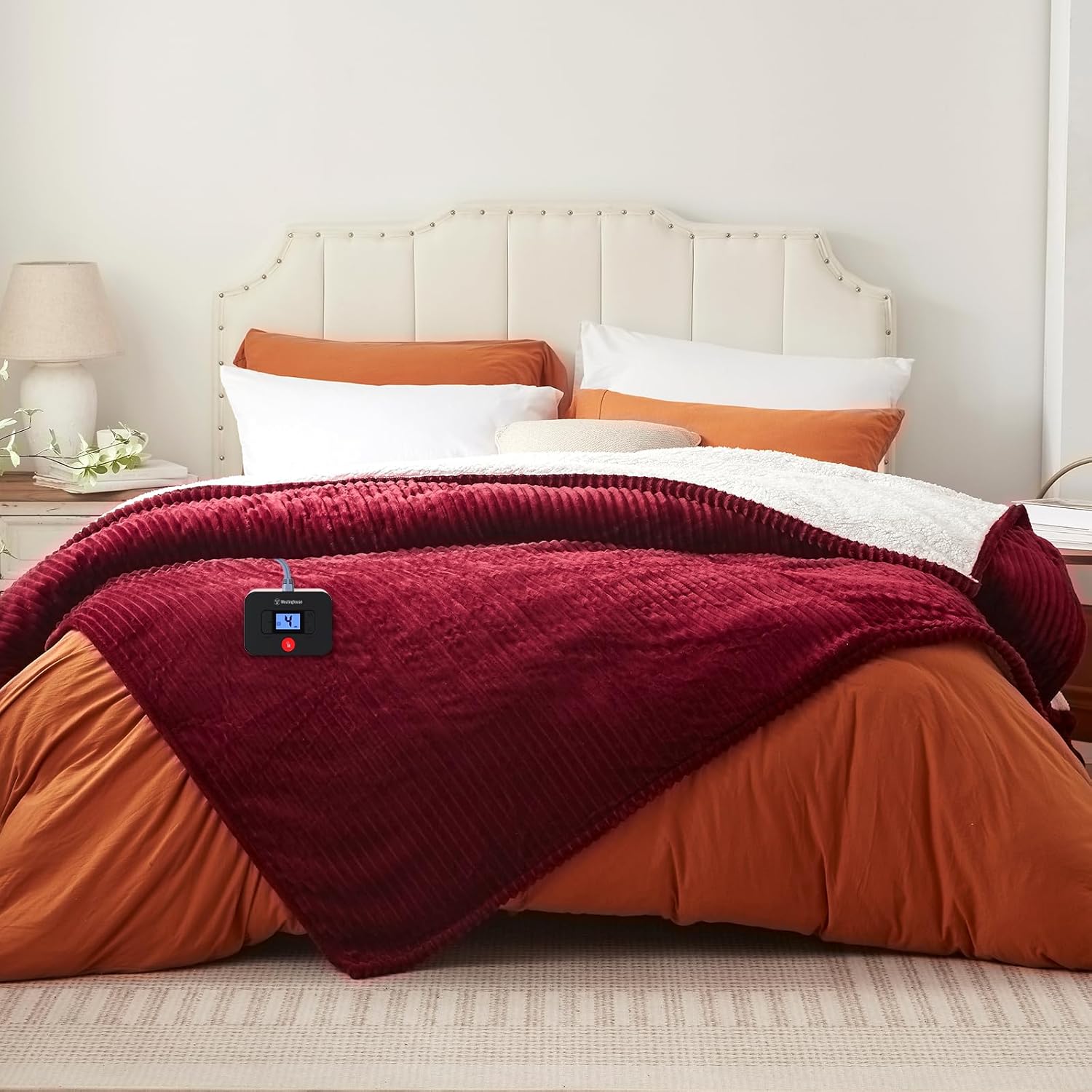 Westinghouse Electric Blanket Twin, Soft Ribbed Flannel to Sherpa Heated Blanket with 10 Heating Levels & 1-12 Hours Auto Shut Off, Fast Heating & Machine Washable, 62x84 Inch, Red