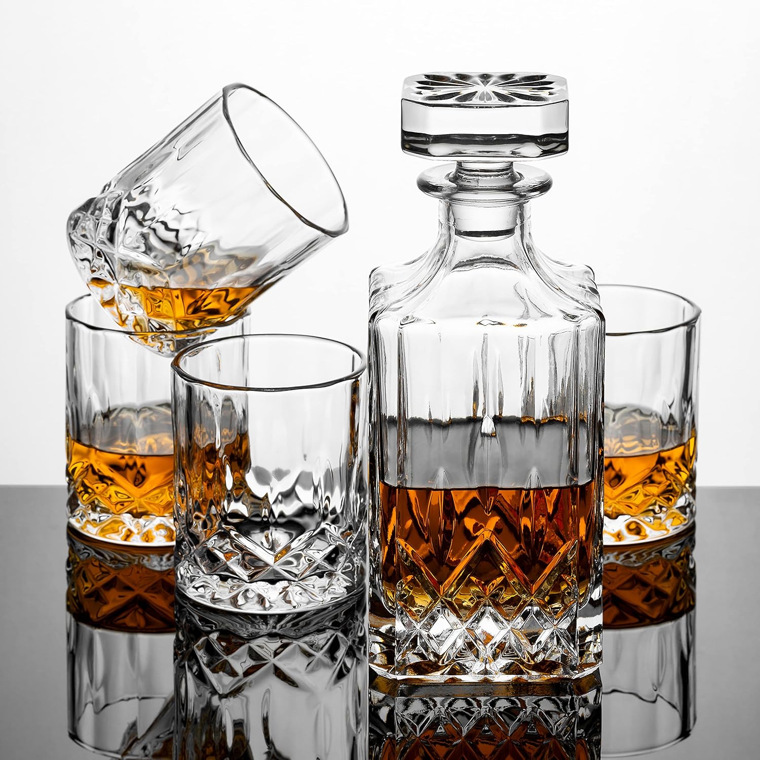 Whiskey Decanter Set with 4 Glasses in Gift Box, Unique Anniversary Housewarming Birthday Gifts for Men Dad Husband Boyfriend, for Bourbon Whiskey Liquor Scotch Gin Rum Tequila Vodka Brandy