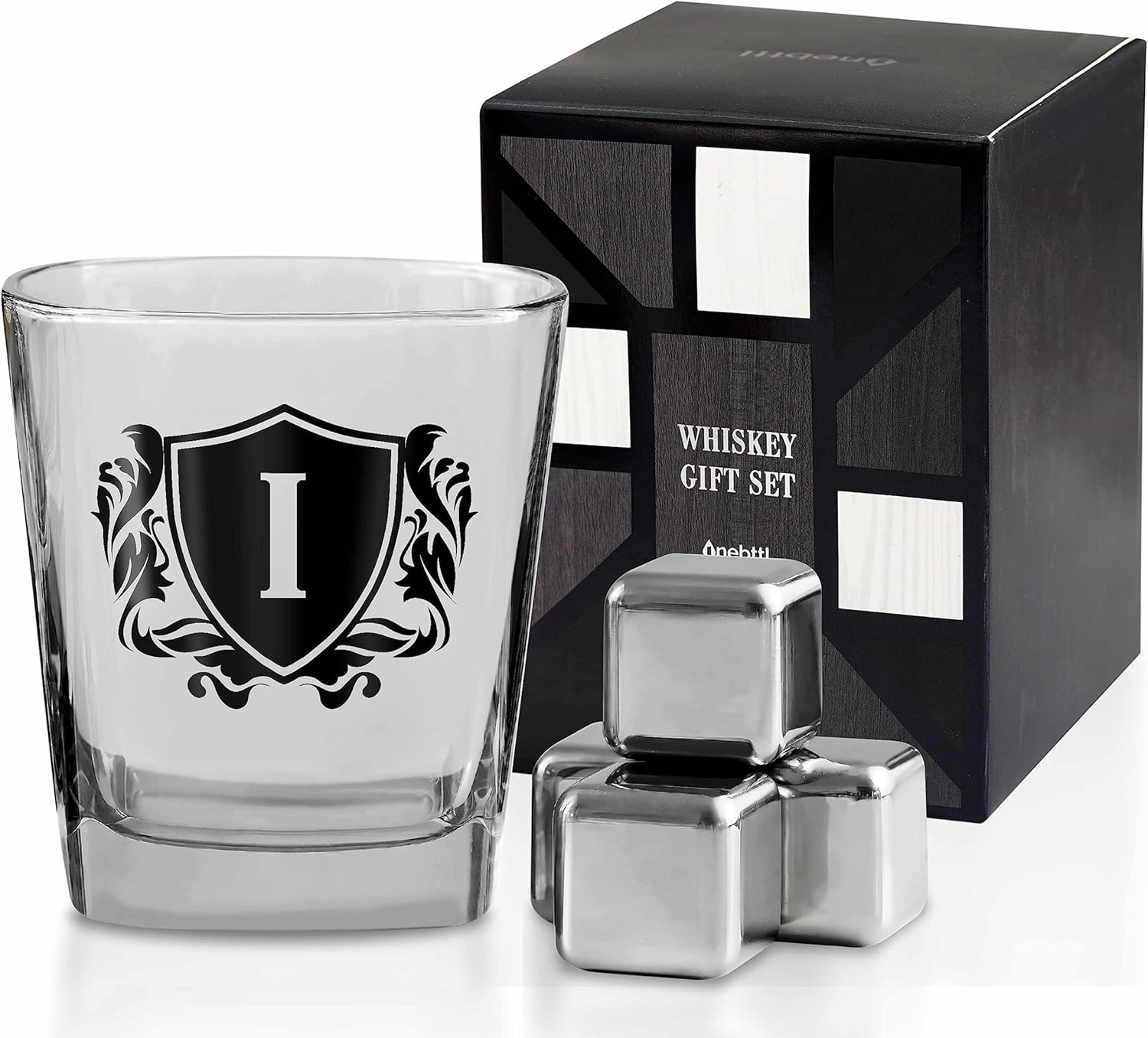 Whisky Gifts for Men, Personalized Initial Whiskey Glass with Whiskey Stones for Dad, Boyfriend, Best Friends, Coworkers, Husband, Brother, Uncle and Boss on Father's Day, Boss Day and Birthday - I