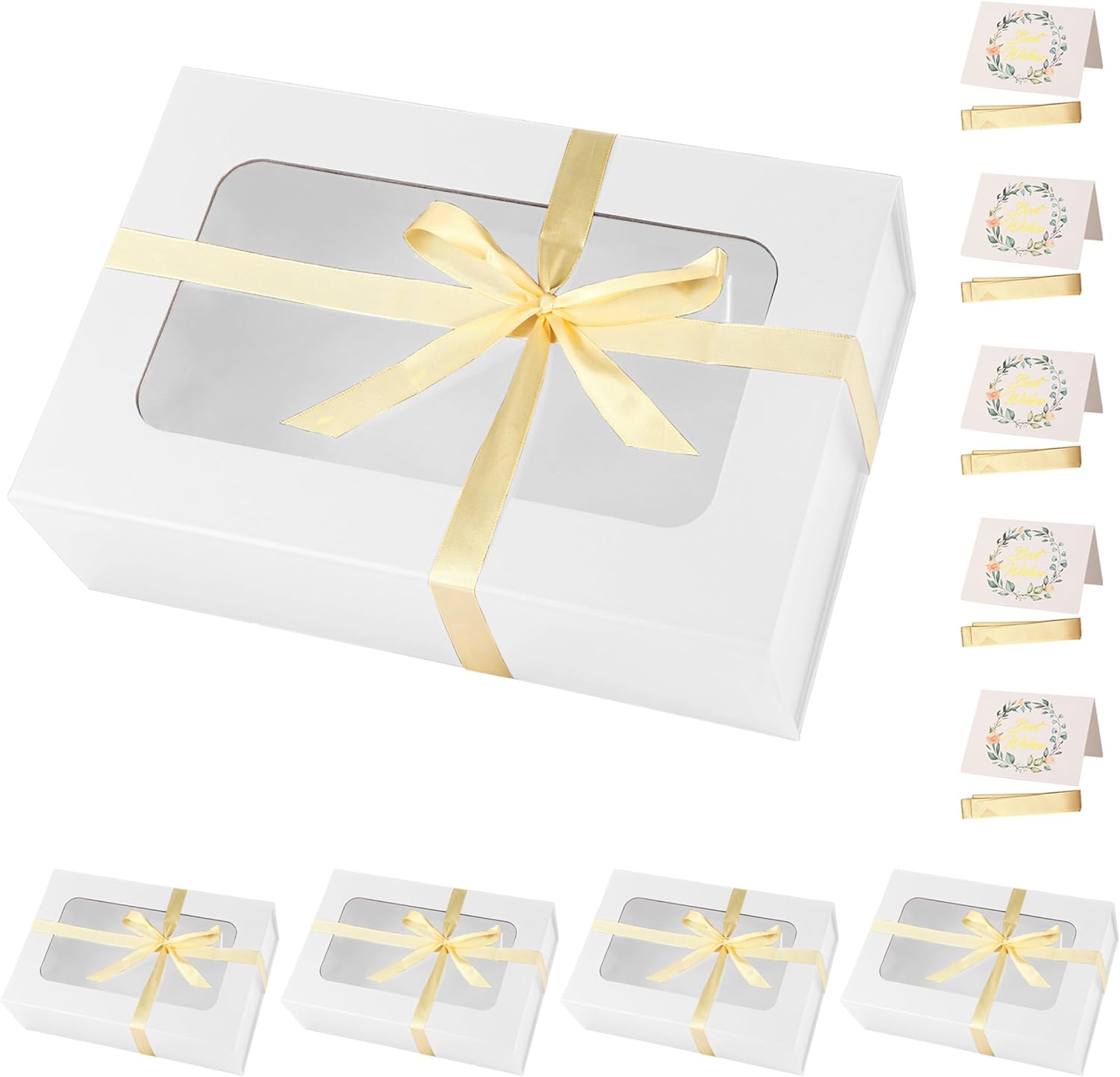 🎁FASHIONS WINDOW DESIGN:The gift boxes with lids for presents transparent window,unique design,make the gift display clearer,complete with a matching ribbon and card for a special touch.