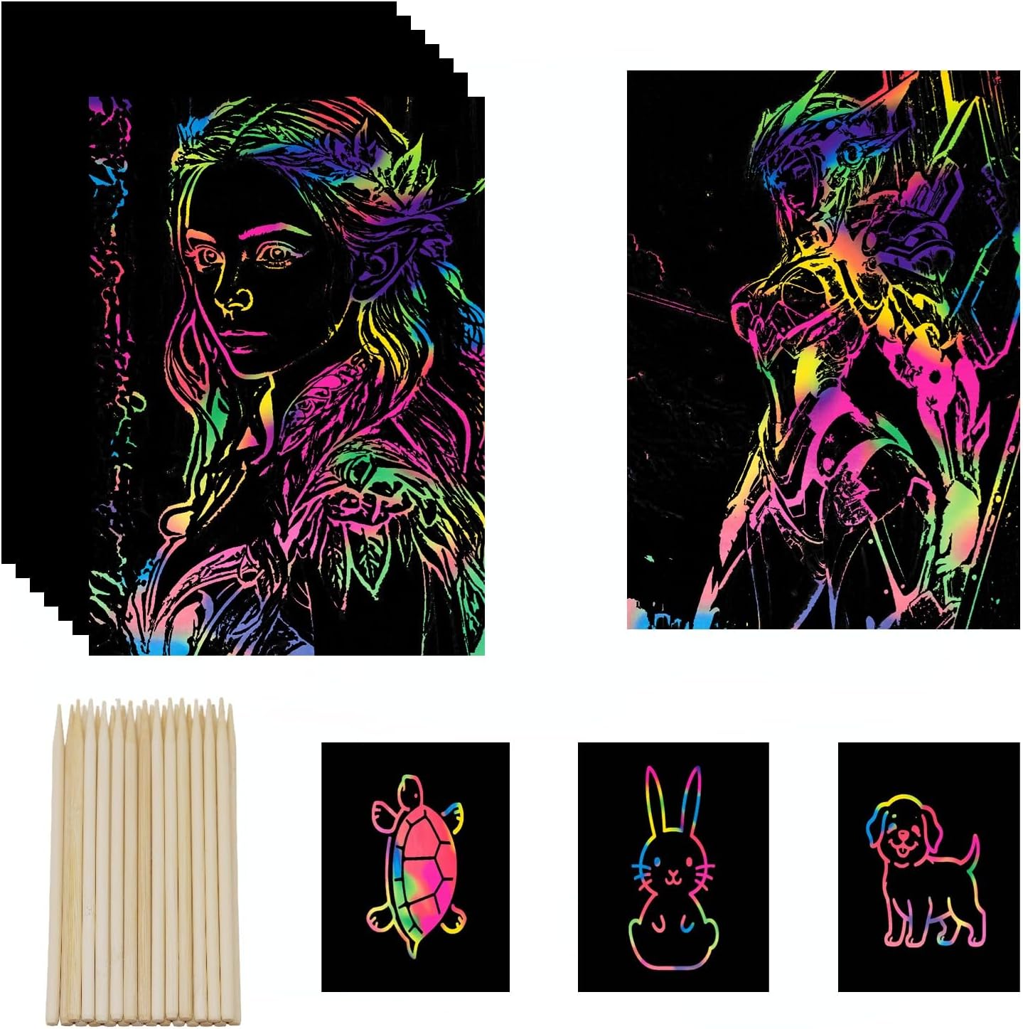 π [Premium Quality Guaranteed]We use premium thick paper that withstands vigorous scratching without tearing, paired with carefully polished bamboo tips for smooth, safe gliding. The durable materials ensure every artwork turns out beautifully whether created by little hands or adult artists