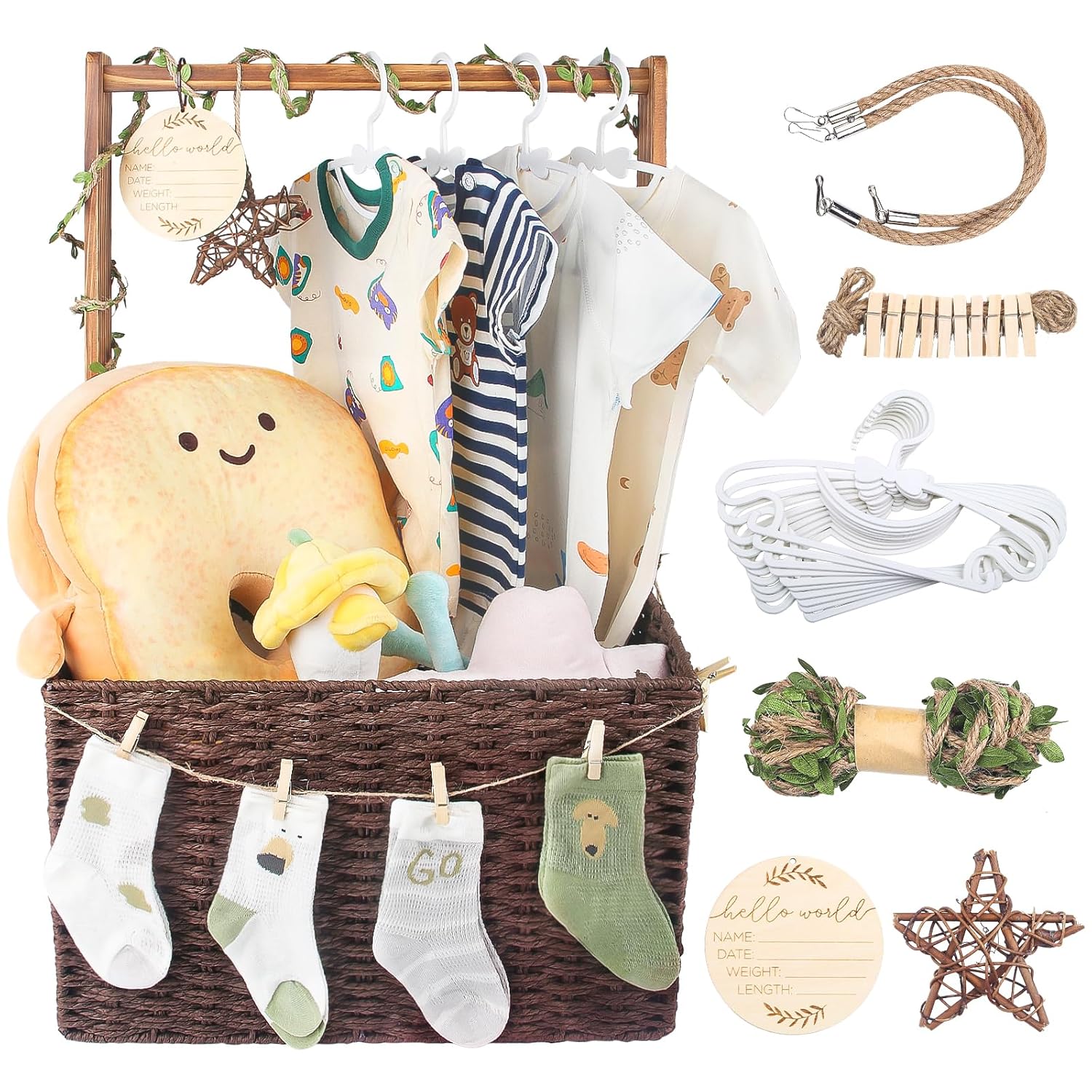 Match as you like: The set is equipped with hangers, information wood pieces, and decorative accessories. You can use your imagination to DIY decorate this baby shower gift basket in any way that is unique and meaningful to you.