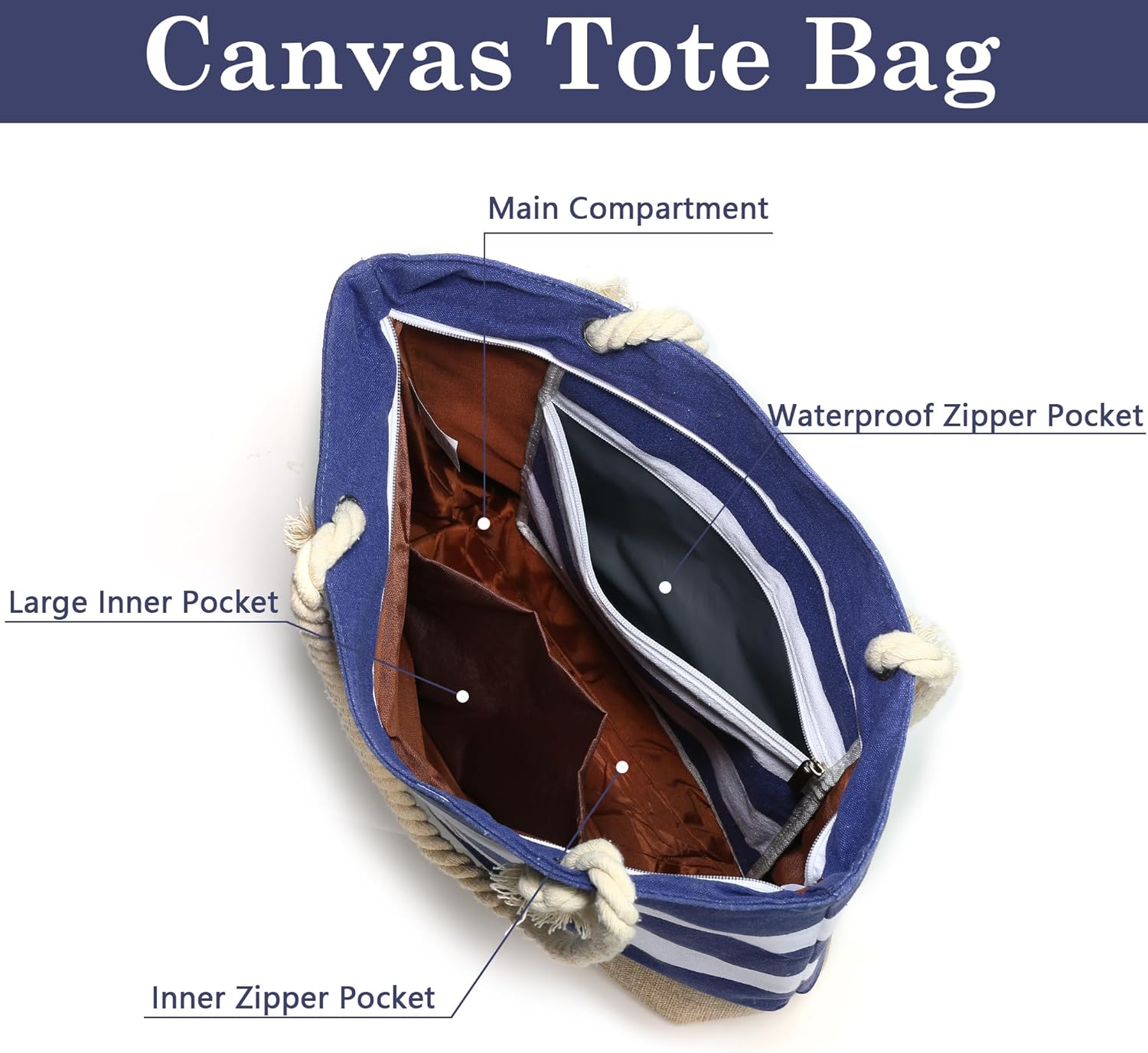 【High Quality Zipper】The zip of the canvas beach tote bag has been lengthened, which makes the process of opening easier and more comfortable. No more worry about the zip getting stuck or not opening and closing smoothly, making your use more convenient and enjoyable