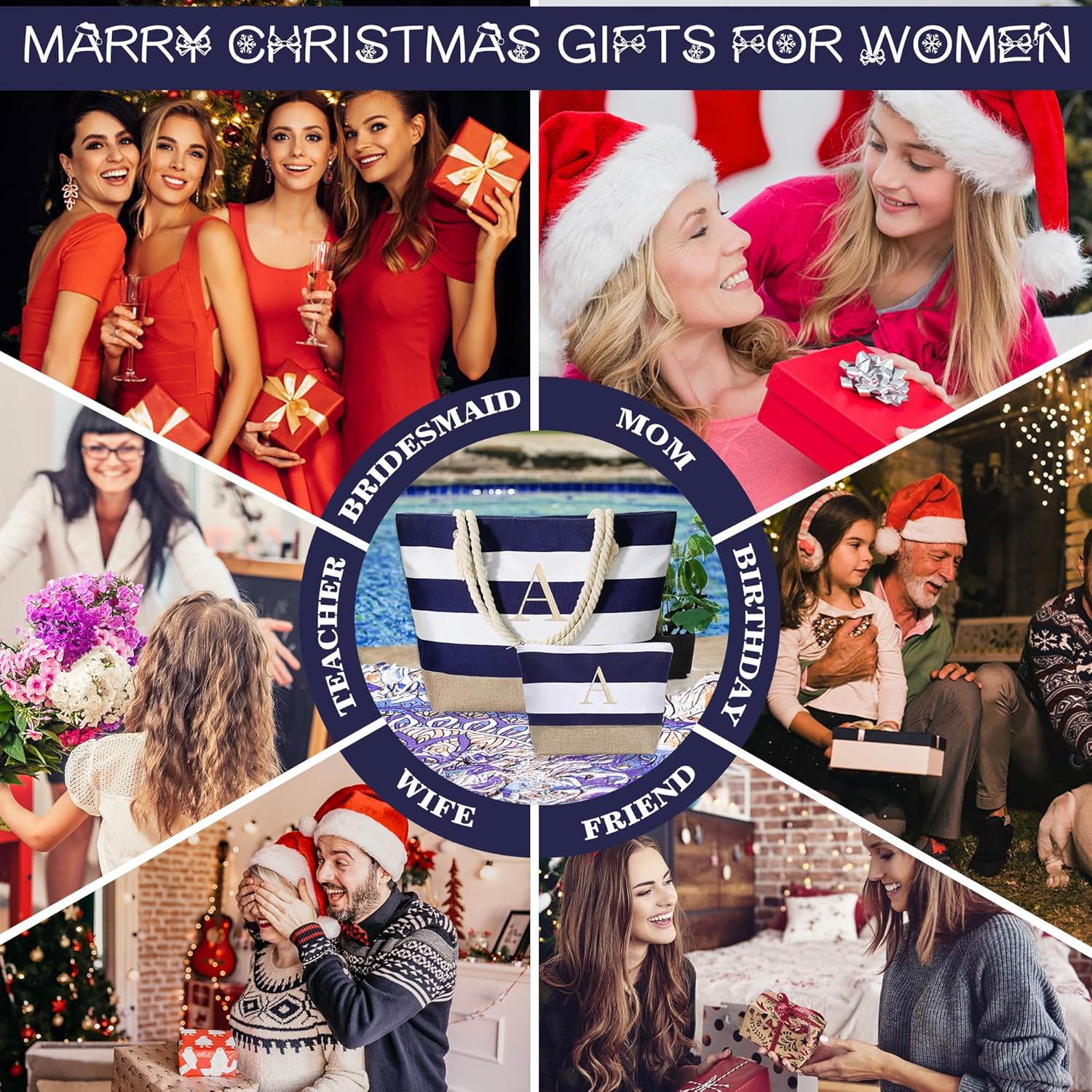 【Personalized Gifts and Unique Initial】The classic embroidered initial and high density monogram, makes the canvas beach tote bag is suitable for wedding, Valentine's Day, Anniversary, Birthday, Mother's Day, Teacher's Day ,which is the personalized gift for women. Whether for wife, girlfriend, mother or sisters, bridesmaid, this beach bag shows thoughtfulness and respect for their individuality, making them feel unique love and special treatment