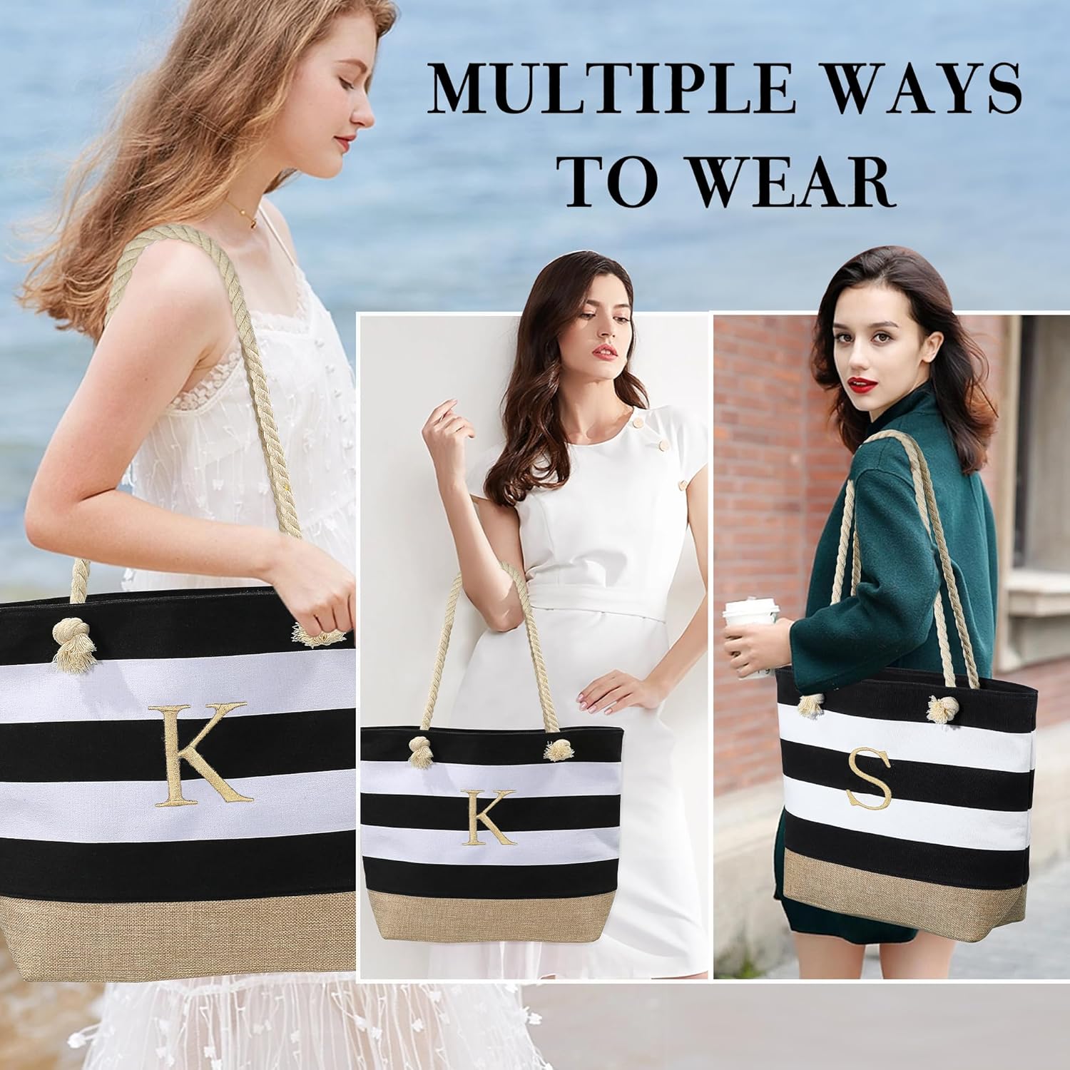 【Unique Embroidered Initials】: One of the features of this beach bag is the embroidered initials. You can choose the corresponding embroidered letter according to the recipient's first or last name, making the gift more personal and unique. Whether for wives, girlfriends, mothers or sisters, bridesmaid, this beach bag shows thoughtfulness and respect for their individuality, making them feel unique love and special treatment