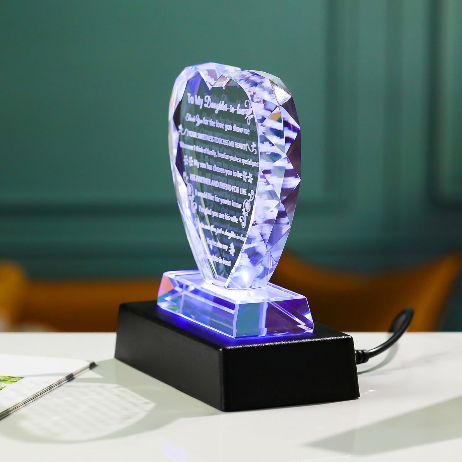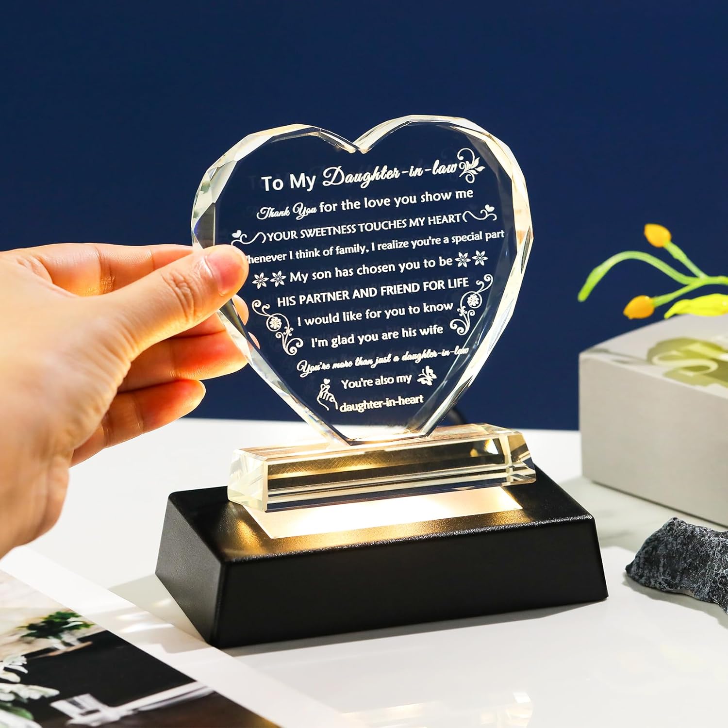 YWHL Daughter in Law Gifts from Mother in Law, Wedding Christmas Mothers Day Birthday Gifts for Daughter in Law Crystal Keepsake with Light Base