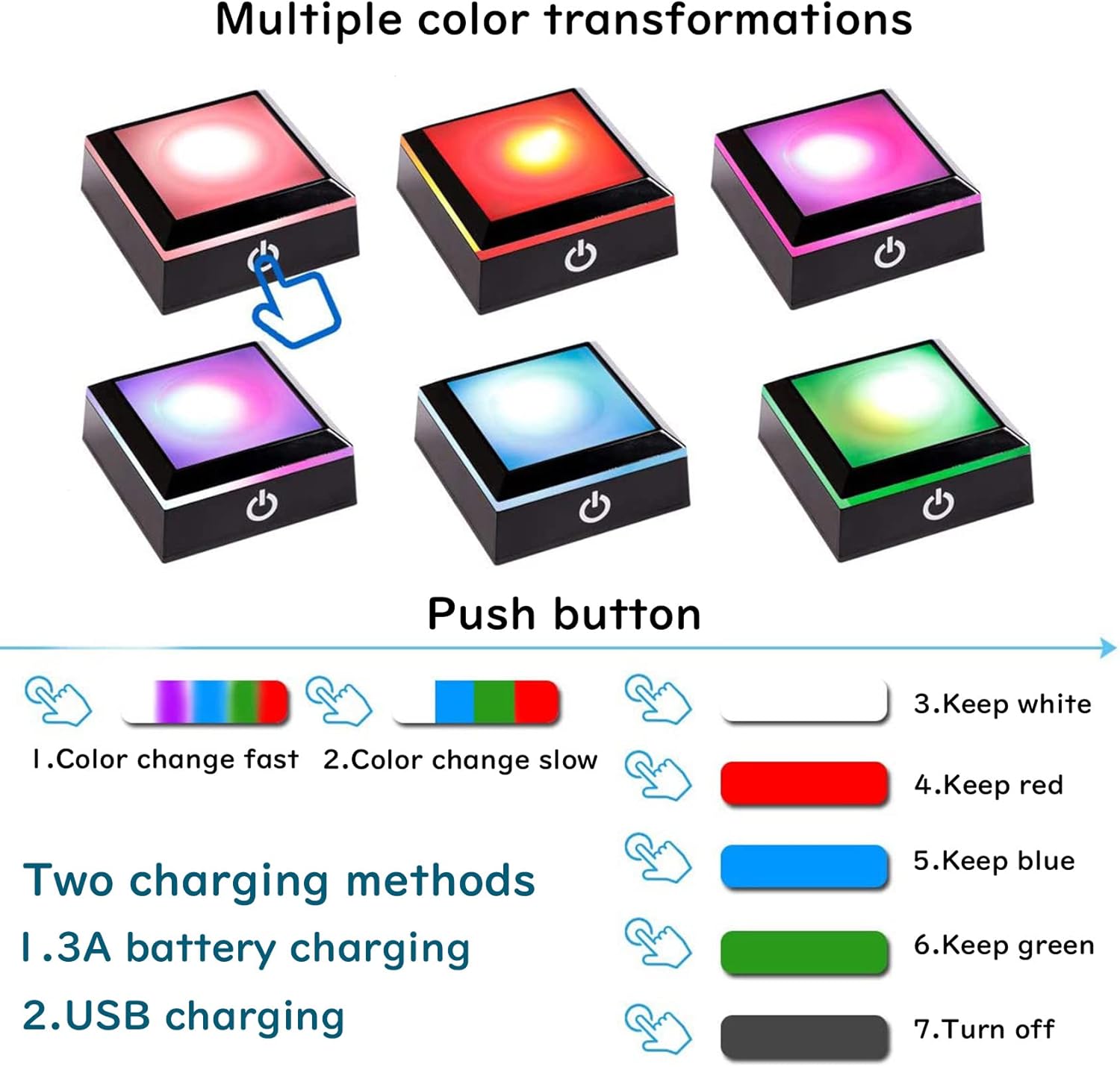 Colorful Light Base: The light of the light base can change color automatically or fix the color, which can make the quotes clearer. In a dark environment, your girlfriend can use it as a night light. The light base has two power sources, using a 3 AAA 1.5 V battery (the package doesn't include batteries and plug) or use charging cable