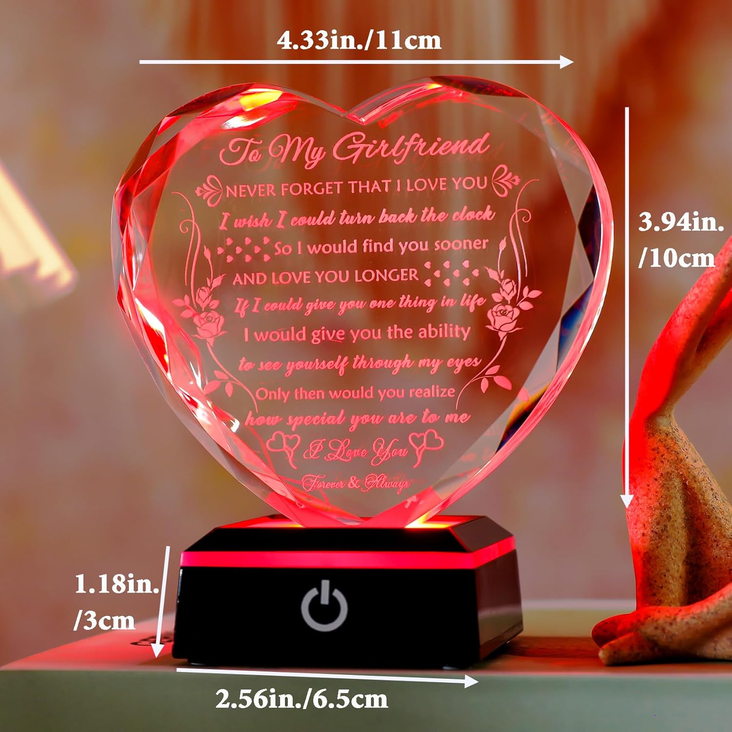 YWHL Gifts for Girlfriend with Colorful LED Base, Anniversary Birthday Gifts for Girlfriend from Boyfriend, Romantic Crystal Heart Keepsake Present for Her on Valentine Christmas