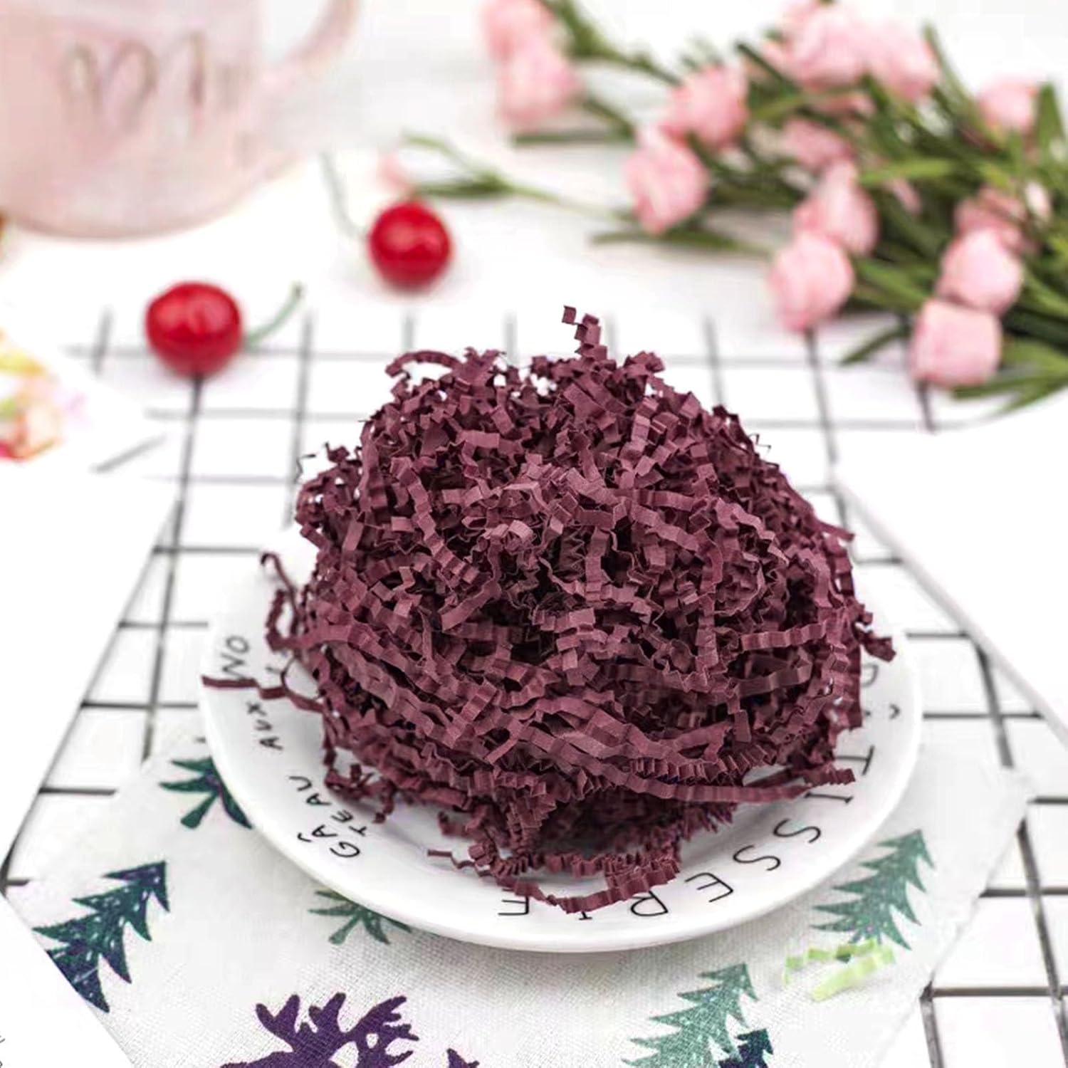 ZEBMOON 2 LB Burgundy Crinkle Cut Paper Shred Filler Great for Gift Wrapping, Basket Filling, Birthday, Wedding, Halloween, Thanksgiving, Christmas Day, New Year Party Decorations Filling Supplies